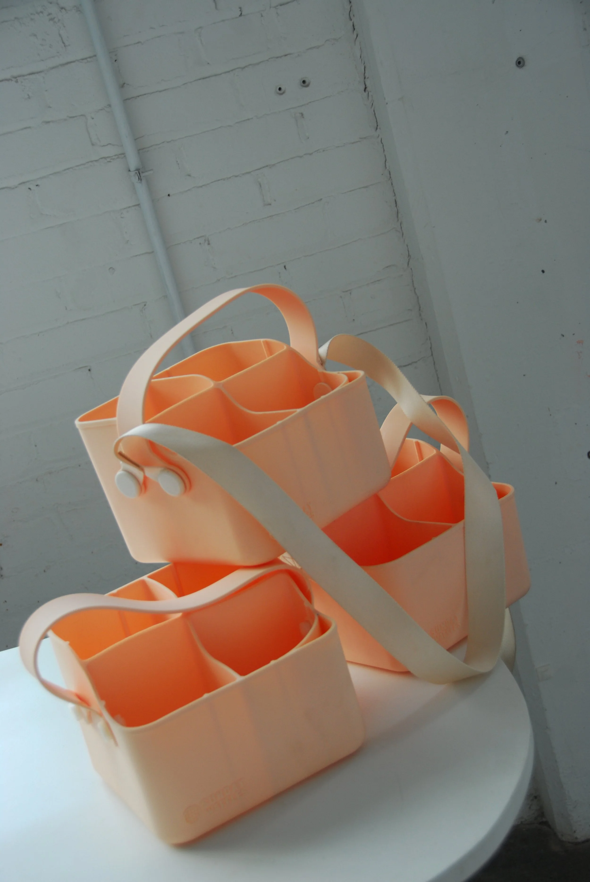 The nylon adjustable strap and silicone handle are both detachable to make both the handle and tote dishwasher safe.